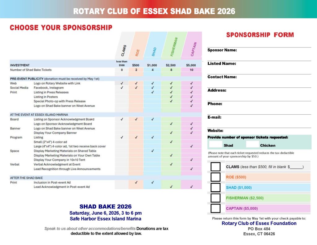 Join Us for the Rotary Club of Essex Shad Bake 2026